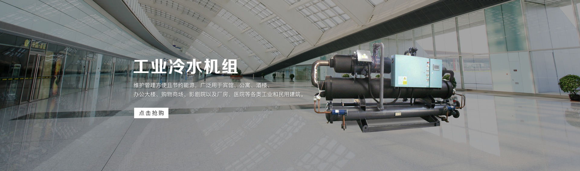 離心機:是依靠離心式壓縮機中高速旋轉的葉輪產(chǎn)生的離心力產(chǎn)生動力進行制冷的,其組成部件主要有離心式壓縮機、蒸發(fā)器、冷凝器、節(jié)流機構、抽氣回收裝置、潤滑系統(tǒng)和電氣控制柜等。它具有單機制冷量大的特點,但存在“喘振”等缺點。
