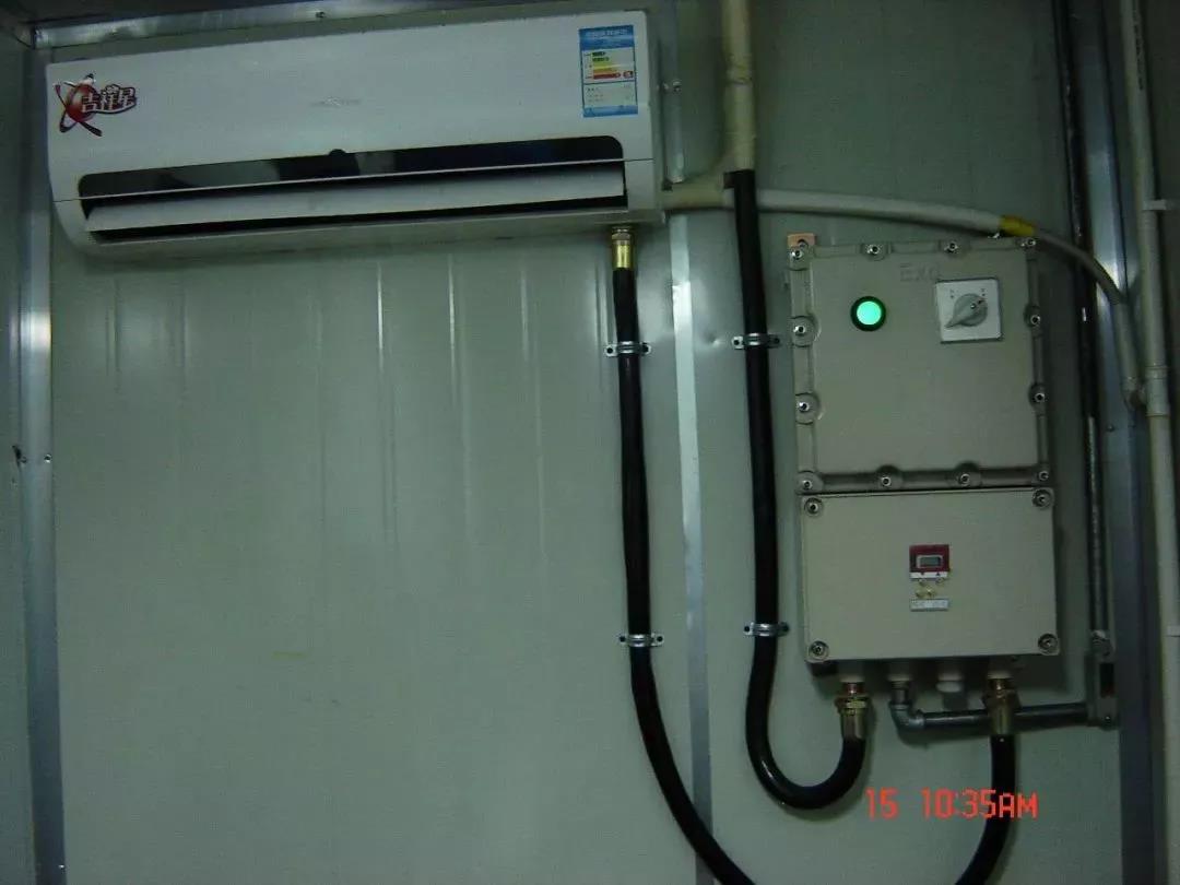 工業(yè)防爆空調(diào)保持普通空調(diào)基礎(chǔ)上,對(duì)電氣系統(tǒng),包括壓縮機(jī)、風(fēng)機(jī)、電氣線路進(jìn)行防爆處理??刂凭€路采用以光耦固態(tài)繼電器為核心的電氣制系統(tǒng)進(jìn)行整體防爆,原保持原來(lái)空調(diào)的基本功能下,簡(jiǎn)化結(jié)構(gòu),簡(jiǎn)化操作,使設(shè)備在性混合氣體環(huán)境中能安全使用。
