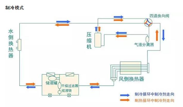 風冷熱泵是以空氣作為冷熱源的熱泵系統(tǒng)。夏季制冷工況下,室外機扮演冷凝器角色,將壓縮機輸出的高溫高壓制冷劑冷卻放熱;室內機則作為蒸發(fā)器,促使低溫低壓制冷劑蒸發(fā)吸熱,實現(xiàn)降溫除濕效果。冬季供暖時,系統(tǒng)通過切換運行模式,室外機轉為蒸發(fā)器吸收空氣熱量,室內機變?yōu)槔淠飨蚴覂柔尫艧崃?,完成制熱過程。這一過程中,風冷熱泵僅需通過四通換向閥的切換,即可完成制冷與供暖工況的轉換,無需額外配置其他冷熱源,顯著提升了安裝與使用的便捷性。此外,因其采用電力驅動,僅需消耗少量電能,即可從空氣中提取數(shù)倍于輸入功的熱量,具備高能效比與低運行成本的優(yōu)勢。