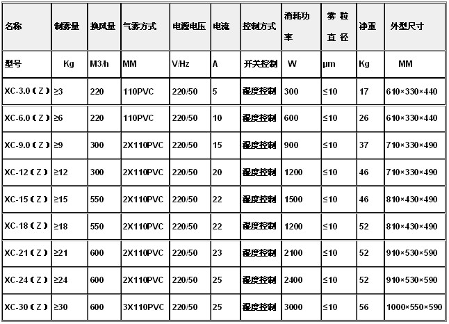 注:Z型為濕度比例自動控制方式,不帶“Z”型為手動開關型;B型為防爆型;可定制非標設備可用純水無“白粉”污染,萬向輪移動式或支架安裝式,也可根據(jù)客戶非標要求定做。