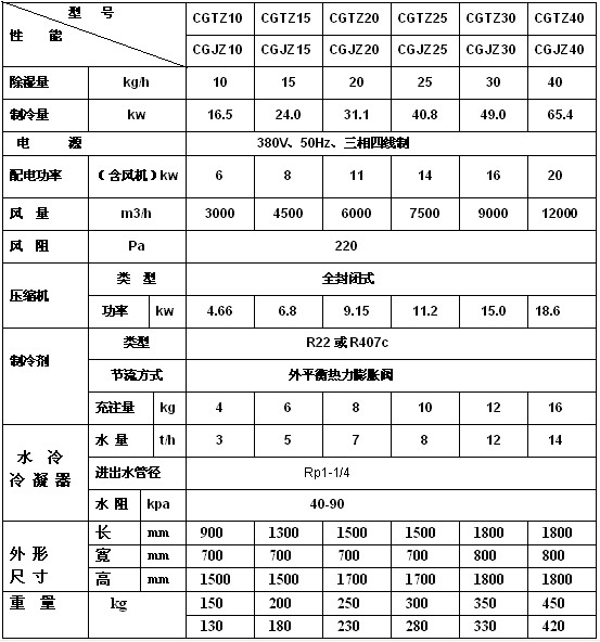 水冷調(diào)溫型管道除濕機(jī)技術(shù)指標(biāo):
